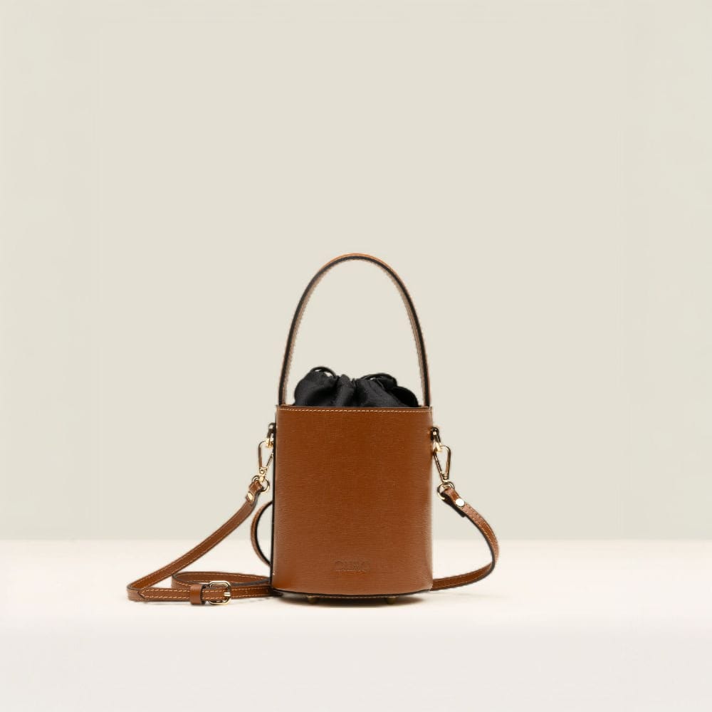 Torbica Marina Brown reinterpretira klasični oblik kantice u minimalističkom i elegantnom stilu. Unutrašnjost vrećice s pamučnom vrpcom ukrašena je ukrasnim resicama koje joj daju nježan i sofisticiran izgled. S dvostrukim kratkim ručkama i podesivim remenom za nošenje preko ramena ili preko ramena, njegova kompaktna veličina čini ga savršenim dodatkom prilagođenom urbanom izgledu.