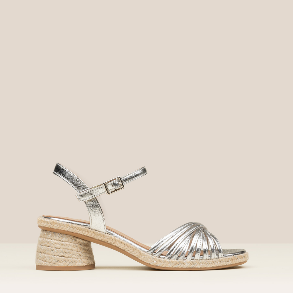 Espadrile Narcisa marke Gaimo nude prirodan i udoban dizajn od ultra meke napa kože, s više ukriženih remena i otvorenom petom s podesivim remenom za gležanj i kopčom. Ručno izrađene u Arnedu u Španjolskoj, kombiniraju lakoću i eleganciju, što ih čini savršenom obućom za svaku posebnu prigodu.